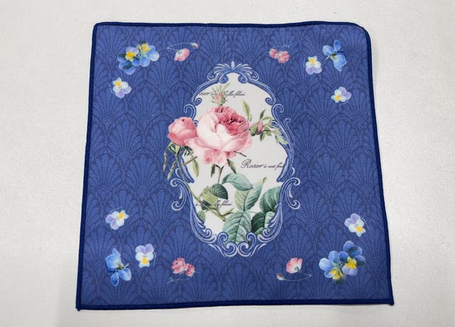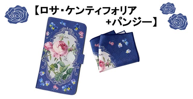 Makuakeデビューを記念して、「ロサ・ケンティフォリア+パンジー」柄のスマホ画面クリーナークロスを一緒にお届け致します。