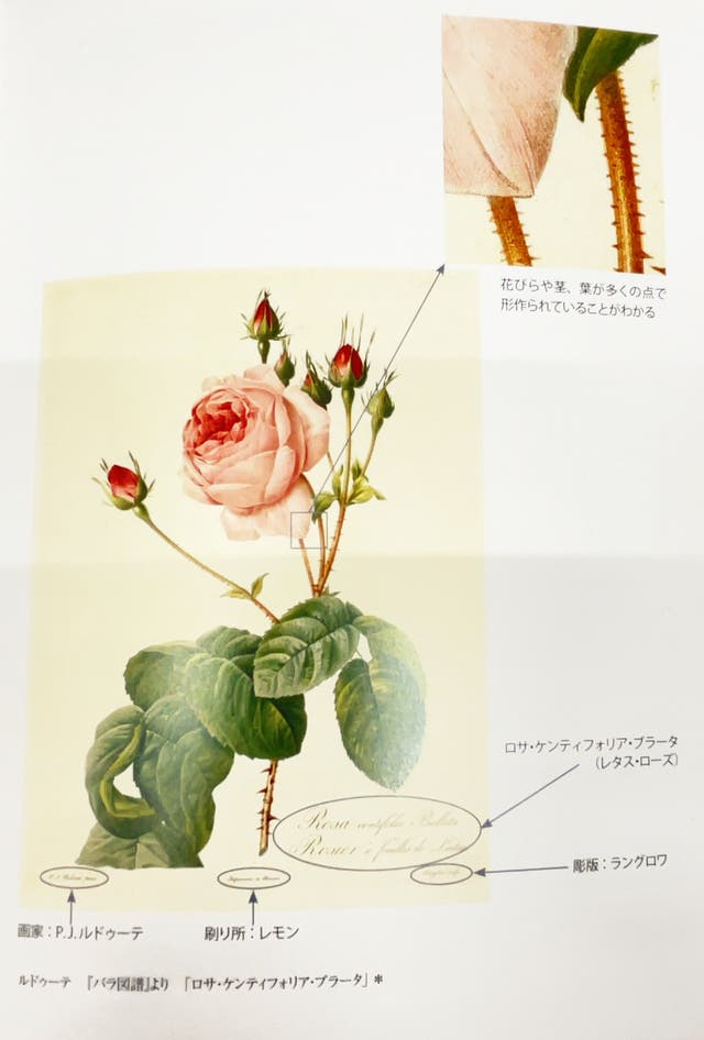 - 花のラファエロと称される ボタニカルアートの第一人者「ルドゥーテ」の原画を基にアレンジ