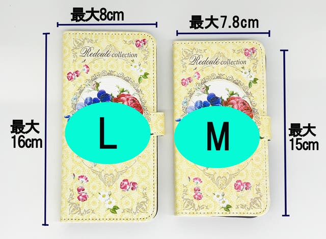 ※スマホケースは個体差による若干の誤差がございます。ご自身のスマホケースのサイズをご確認の上、お選びください。