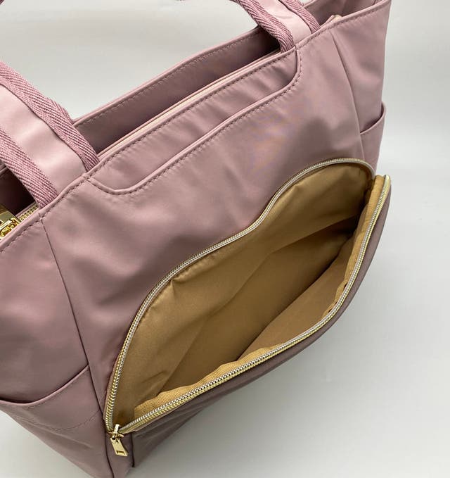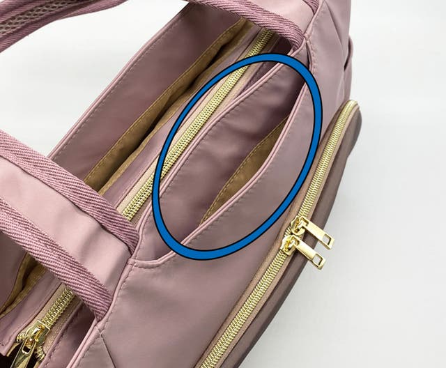 左サイドには、メイン収納にアクセスできるファスナー付き。