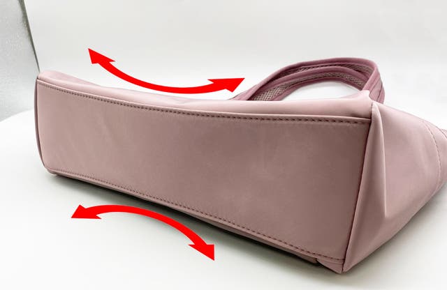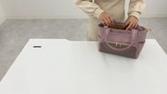 A2.手提げ・ショルダーバッグともに本体は張り感のある合成繊維を使用しており、光沢感をお楽しみいただけます。
