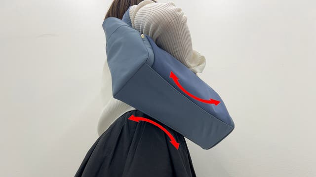 肩に掛けた時に身体への当たりがやさしくなるよう工夫しています。