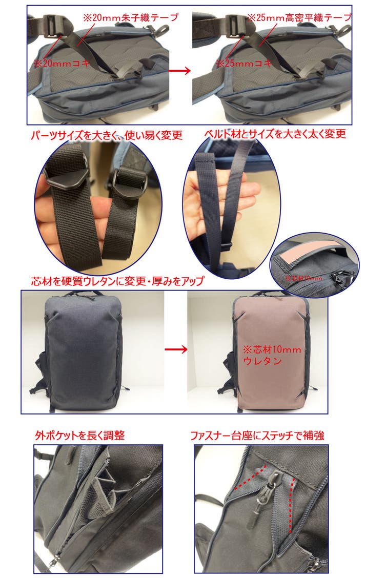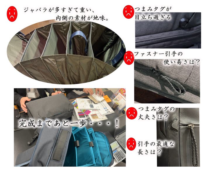 難しい仕様のリュックですが、半世紀以上企画から企画・製造に至るまで、あらゆる技術に力を注いできた老舗バッグメーカーにご協力いただき実現しました。