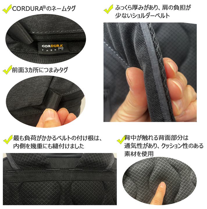 (コーデュラ生地以外の前側部分には、はっ水生地を使用しております)