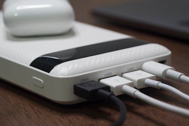 旅行先などでは、パワーバンクを充電することも非常に重要です。この製品は3パターンの充電に対応しています。