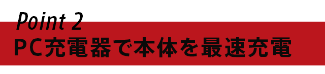 本体からデバイスへの充電だけでなく、PC充電器から本体への充電も可能にしました。