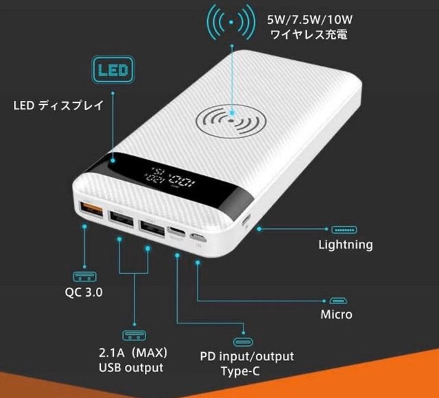 Belpink はUSB×3(内1つはQC3.0)、Type-C、Micro、Lightning、おまけに全てのワイヤレスデバイスにも対応したマルチパワーバンク。