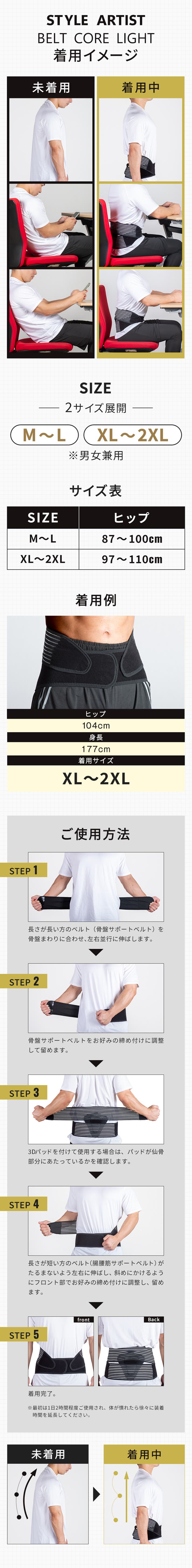 STYLE ARTIST BELT CORE LIGHT【XL-2XLサイズ】×2個