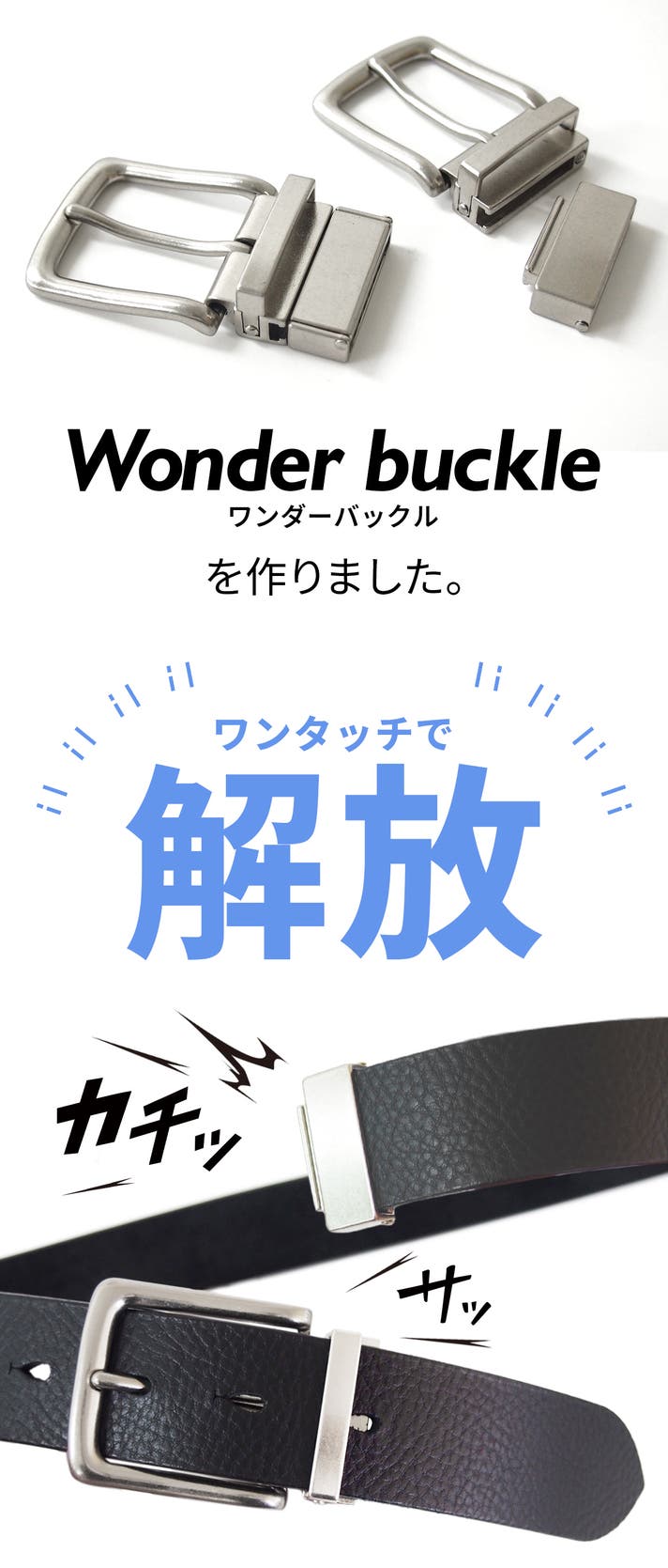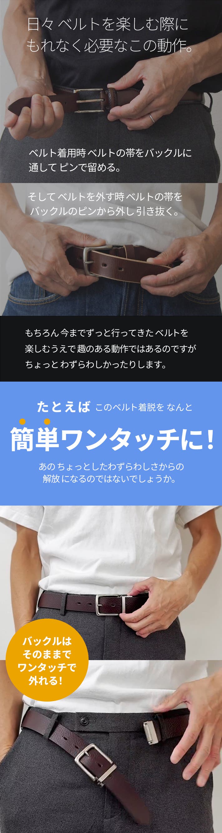 バックルそのまま瞬間リリース!ワンタッチな牛革ベルト