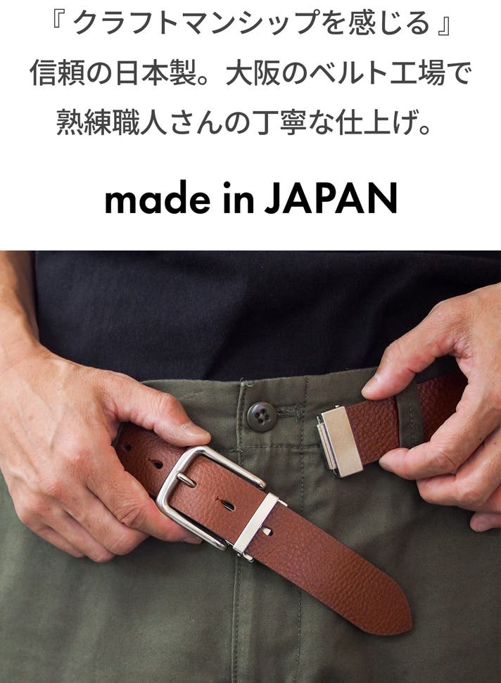 - 『 クラフトマンシップを感じる 』信頼の日本製。大阪のベルト工場で熟練職人さんの丁寧な仕上げ。