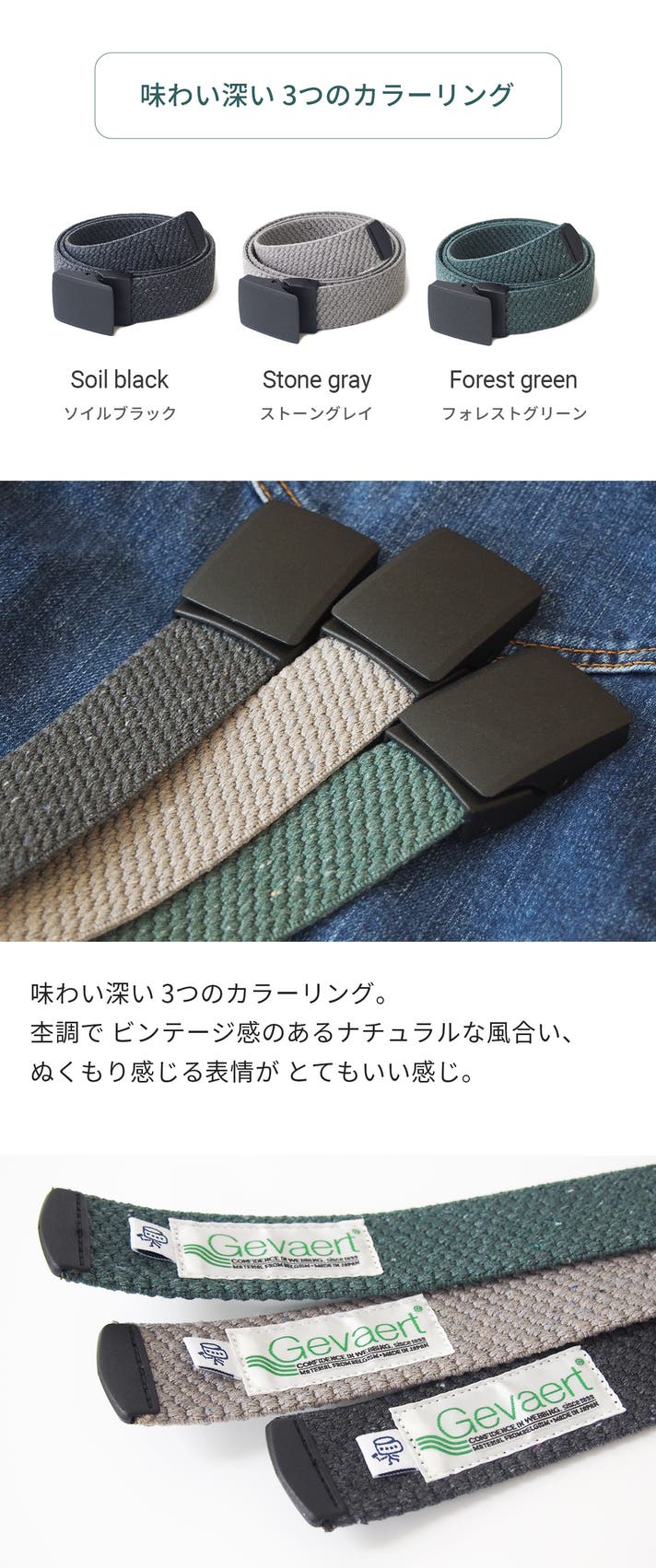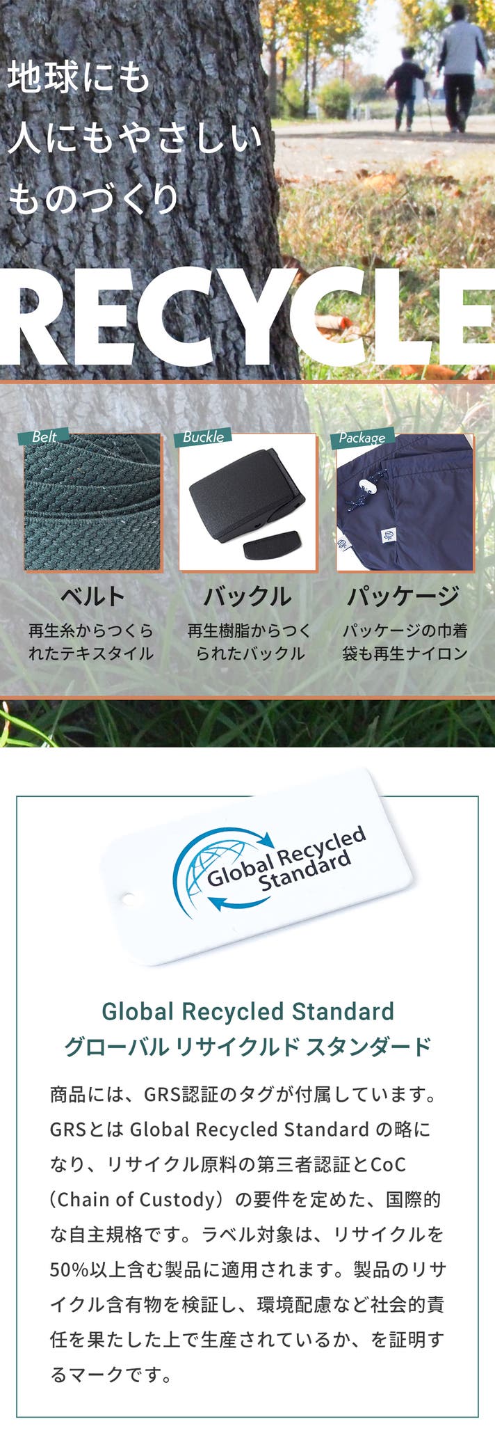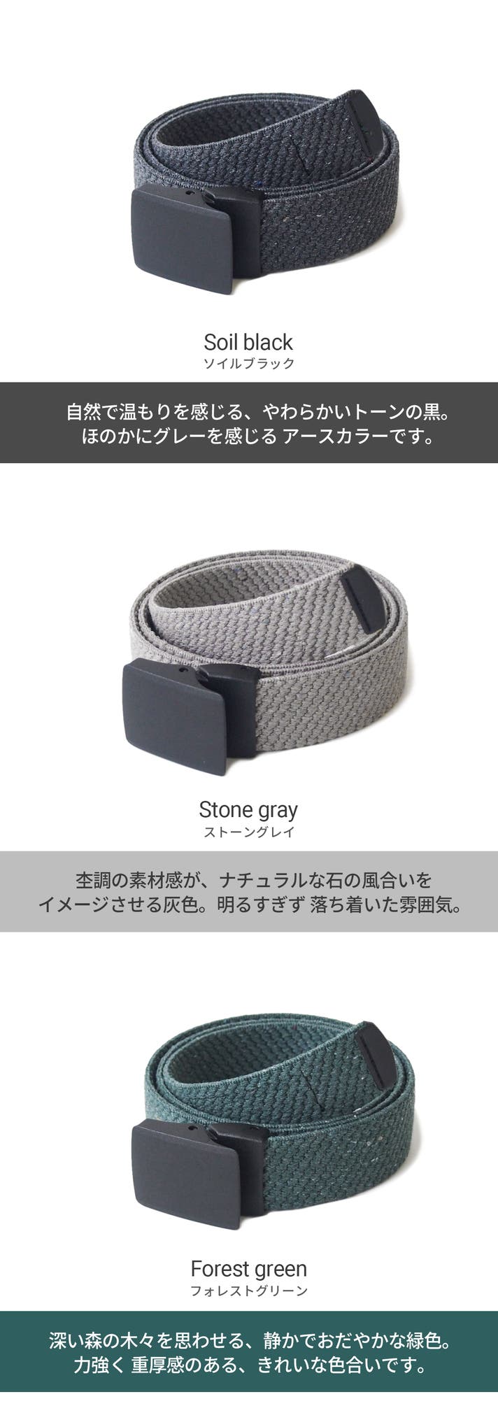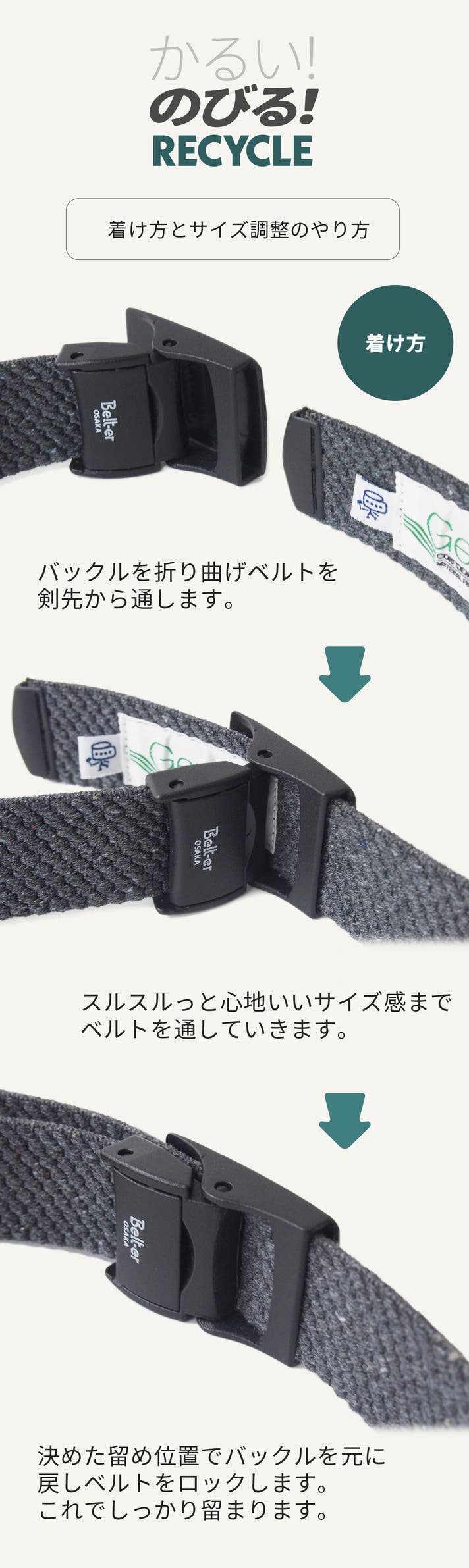- 地球に優しい、サステナブルな再生素材で、快適なゴムベルトを作りました。