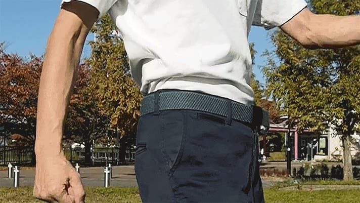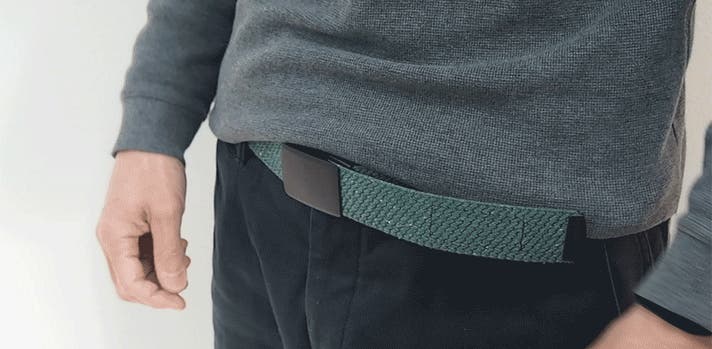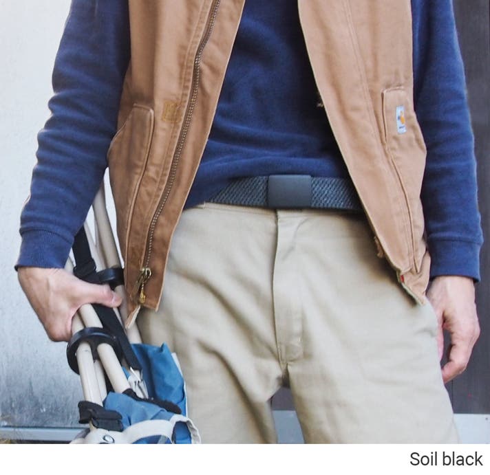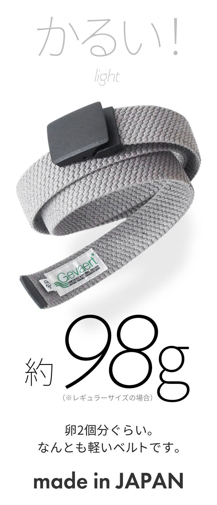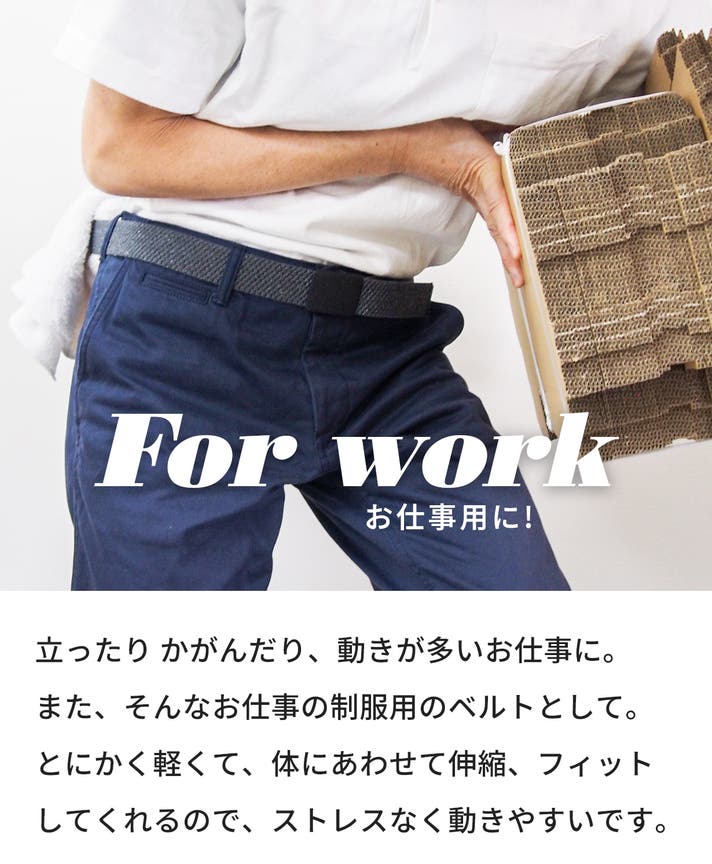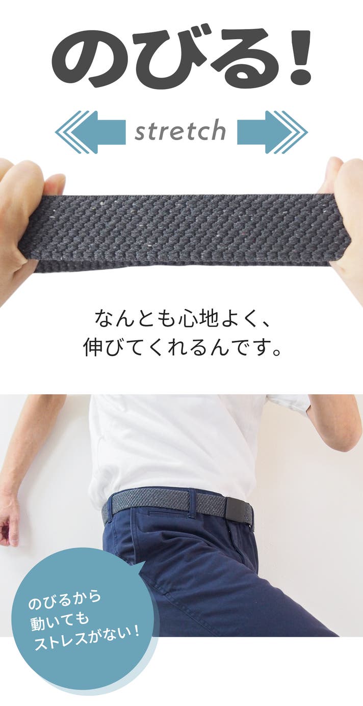 - とにかく軽い。どこでも留められて便利。伸縮して、体にフィットするベルトです。