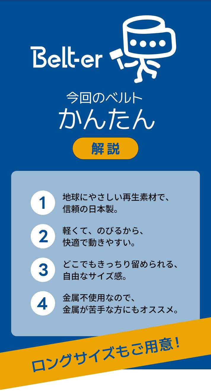 ロングサイズ【とっても早割り】で「15%OFF」な Belt-er ゴムベルト