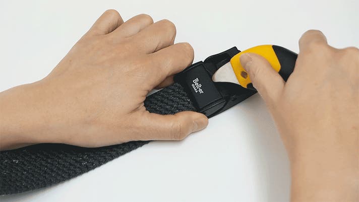 サイズ調整はバックルを外してテープをカットします。