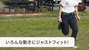 たとえば、アウトドアシーンや、スポーツシーンにもオススメです。かがんだりした時にも、体になじみ伸縮してくれるので、とても快適なんです。