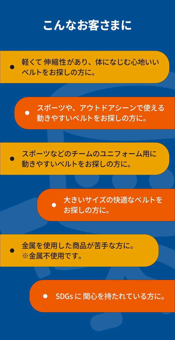 SDGsにお取り組みの企業さまの制服用のベルトや、福利厚生として。
