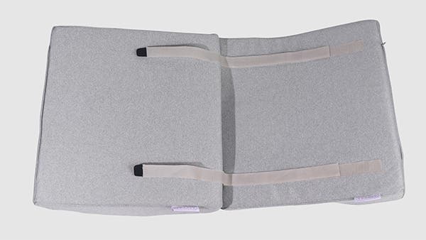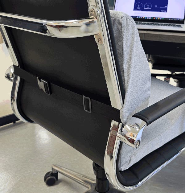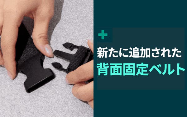 従来のTRAAVIクッションには固定ベルトがなく、ズレやすいといったお声がありました。クッションの背面に固定用ベルトを追加したことで、車のシートや椅子にもしっかりと固定できるようになりました。