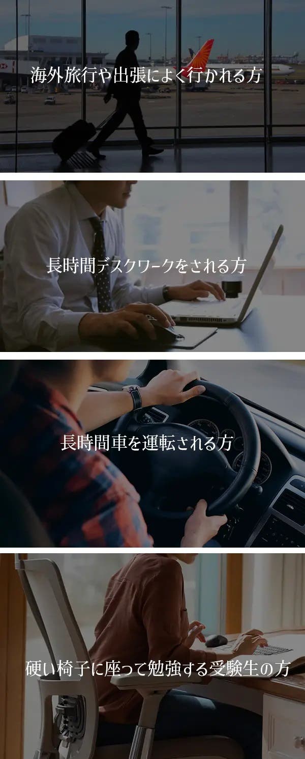 『SKYクッション』は、当社の創業者自身の切実な想いから誕生したクッションです。彼は過去14年間で100回以上イタリアへ出張しており、長時間の移動のたびに、腰で悩んでいました。