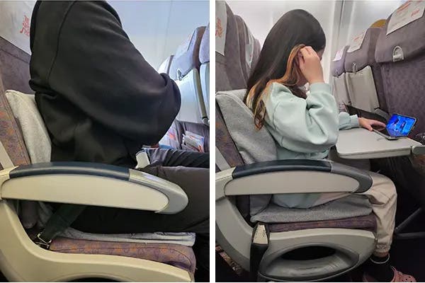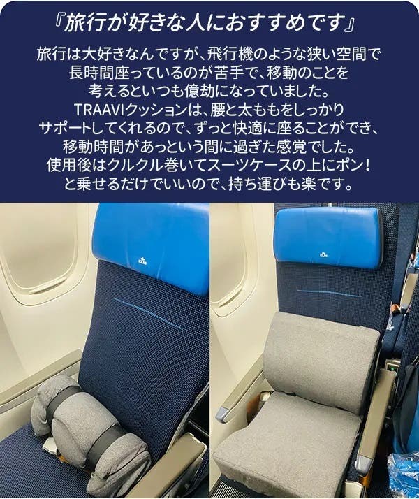 「これまで、旅行や出張で飛行機の狭い座席にお困りだった方、必見です!」
