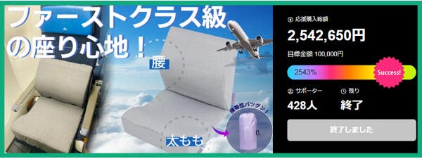 「Makuake(マクアケ)」は、実行者の想いを応援購入によって実現するアタラシイものやサービスのプラットフォームです。このページは、 プロダクトカテゴリの 「『クッションひとつでVIP気分』長距離移動を快適に─贅沢な座り心地の S K Y」プロジェクト詳細ページです。