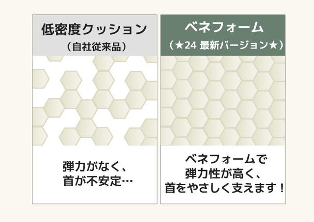 - みっちり詰まってもっちりとした 高密度メモリーフォームで、首をやさしく支えます!