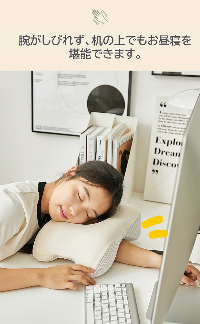 腕がしびれず、机の上でもお昼寝を堪能できます。