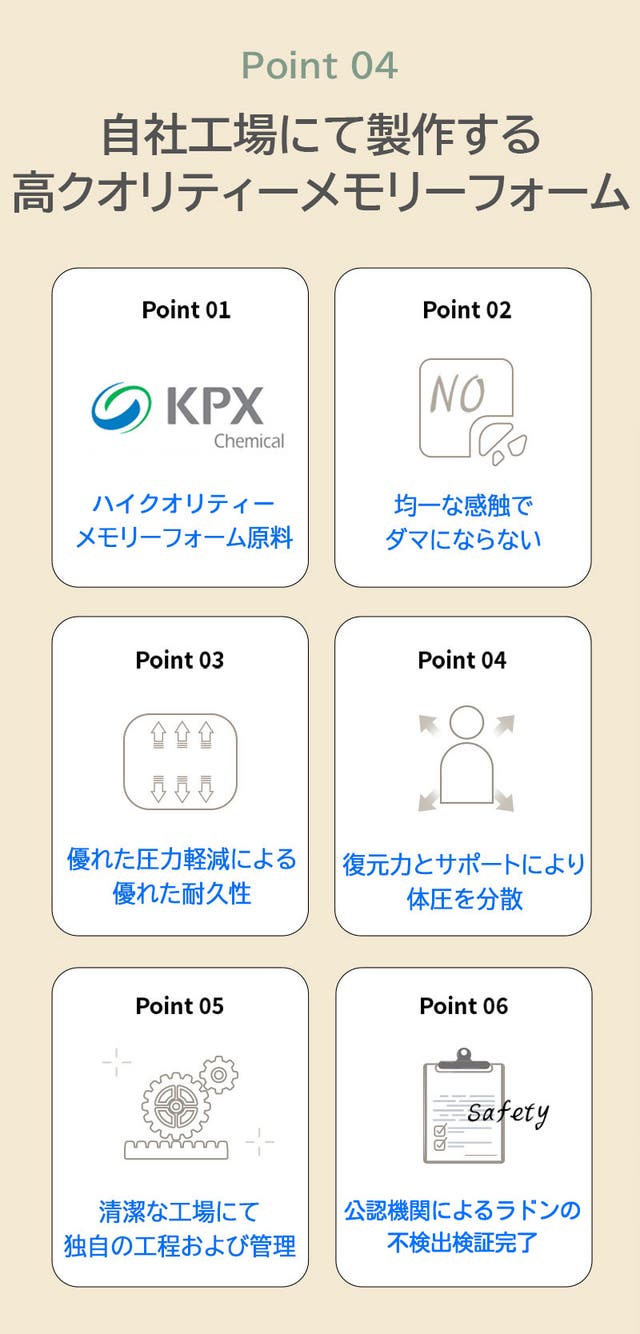 体の形を記憶するソフトな弾力性 !高密度メモリーフォーム復元力 !