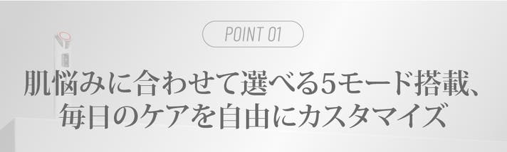 5色のLEDとEMS・RF・イオントフォレーシスなど、複数の技術を掛け合わせた5つのケアモードを搭載。肌のコンディションや目的に応じて、光・刺激・振動の組み合わせを選べるから、いつものスキンケアタイムが、より効果的に・自分らしく進化します。その日の肌に寄り添いながら、気になるポイントへしっかりアプローチする設計です。