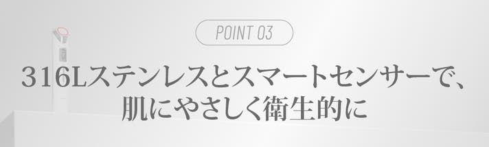 316Lステンレス素材を、肌に触れるヘッド部分に採用。肌に触れたときだけスマートセンサーが作動し、正確なケア時間を計測することで、安定した使い心地と衛生的な使用を実現しました。