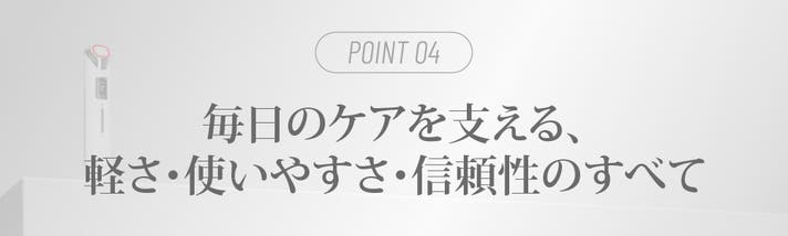 視認性の高い表示と音声ガイドで、はじめてでも自然に使いこなせます。毎日のケアに自然になじむ、使いやすさをとことん追求しました。