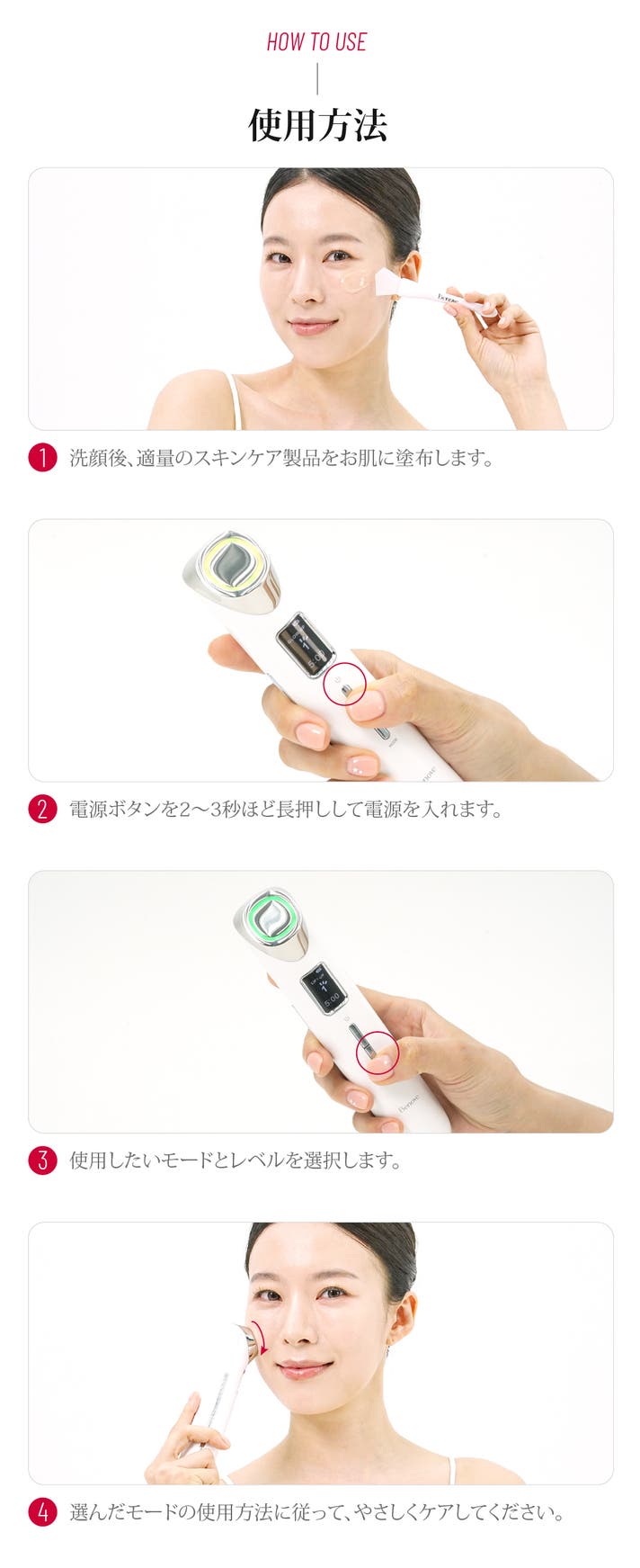 毎日のスキンケアにプラス1台。 化粧品の美容成分がしっかり届く肌状態をサポートし、 あなた本来の美しさを引き出します。