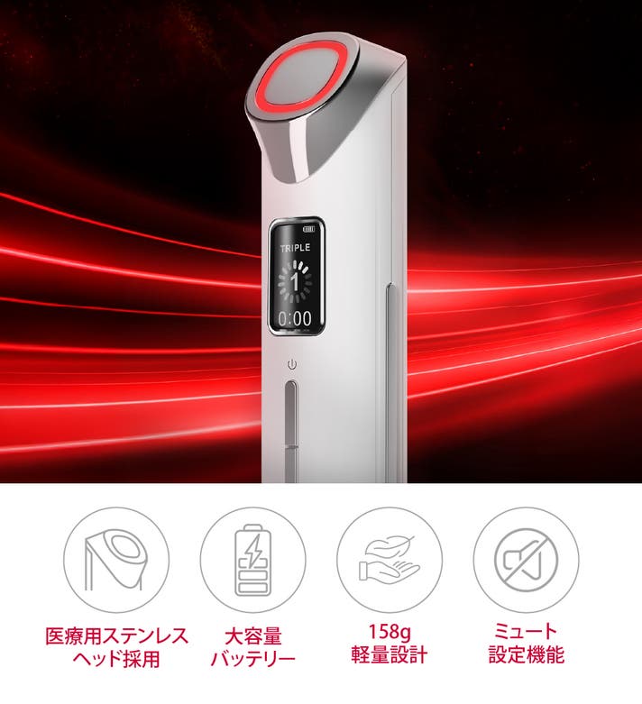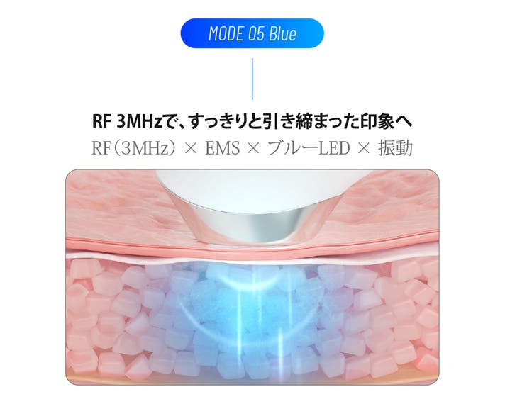 A. 各モードにより異なります。「GLOW UP」モードはイオントフォレシス、「TRIPLE」や「LIFT UP」モードはRFとEMSを組み合わせた設計です。お悩みに応じてモードをお選びください。