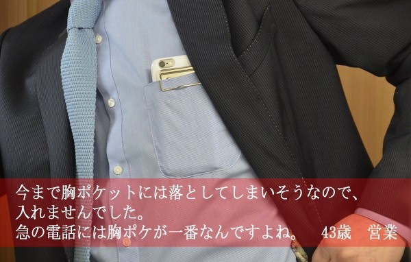 そのような時、胸ポケットや襟元にこのBenriderを挟めば、