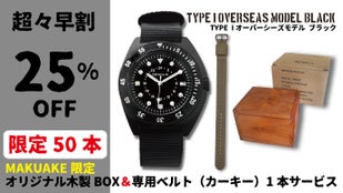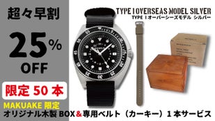 時計本体 (TYPE1ブラック)×1点 (TYPE1シルバー)×1点 合計2点 MAKUAKE限定オリジナル木製BOX 替えNATOストラップ(カーキーカラー美錠)×各1点 取扱い説明書兼保証書