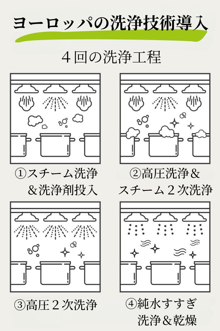 Bergenは特別な専用機械によって4回の洗浄過程を行い家庭で一度簡単に洗浄するだけで直ぐご使用になれます。