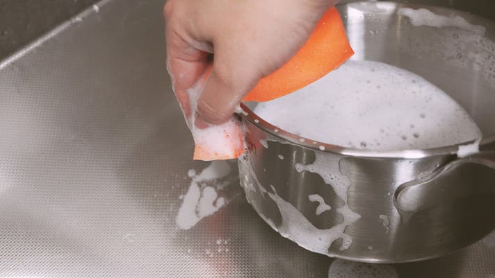 A.ステンレス専用洗剤またはベーキングソーダを洗剤と一緒に溶かして柔らかいたわし等で磨いてください。 それでも変色が取れない場合、大きな釜に水を沸かしてベーキングソーダを入れてステン製品を漬けておいた後洗浄すると効果的です。