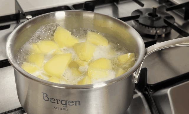 2.蓋なしの中火~強火でぶくぶくを待つ