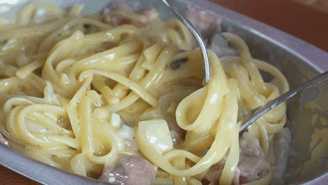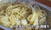 6.とろみがつき汁けがなくなってきたらパスタの硬さを確認