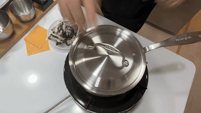 4.沸騰してきたらマッシュルームを入れてまた蓋をする