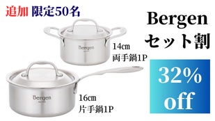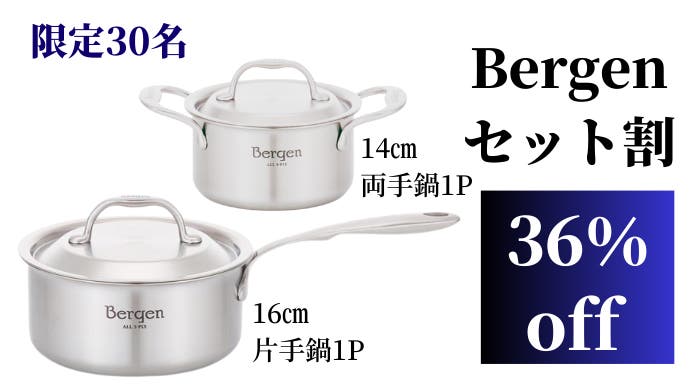 追加 限定50名 Bergenセット割 ベルゲン片手鍋16cmと両手鍋14cm