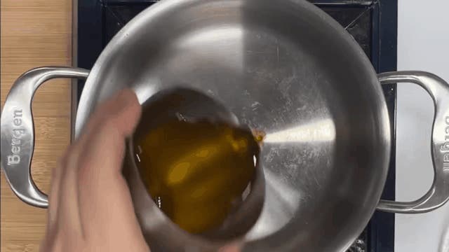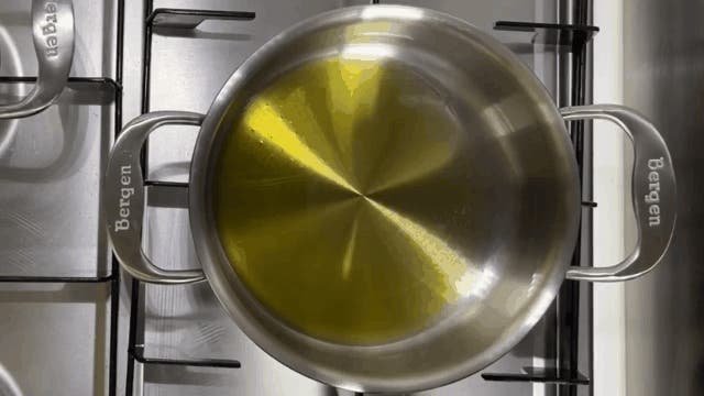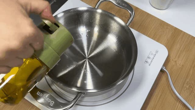 ステンレス鍋で焼いたり炒めモノをする時は、しっかり鍋を熱した後、少しだけ熱を落ち着かせて油をひき弱めの中火で調理します。強火は禁物です。