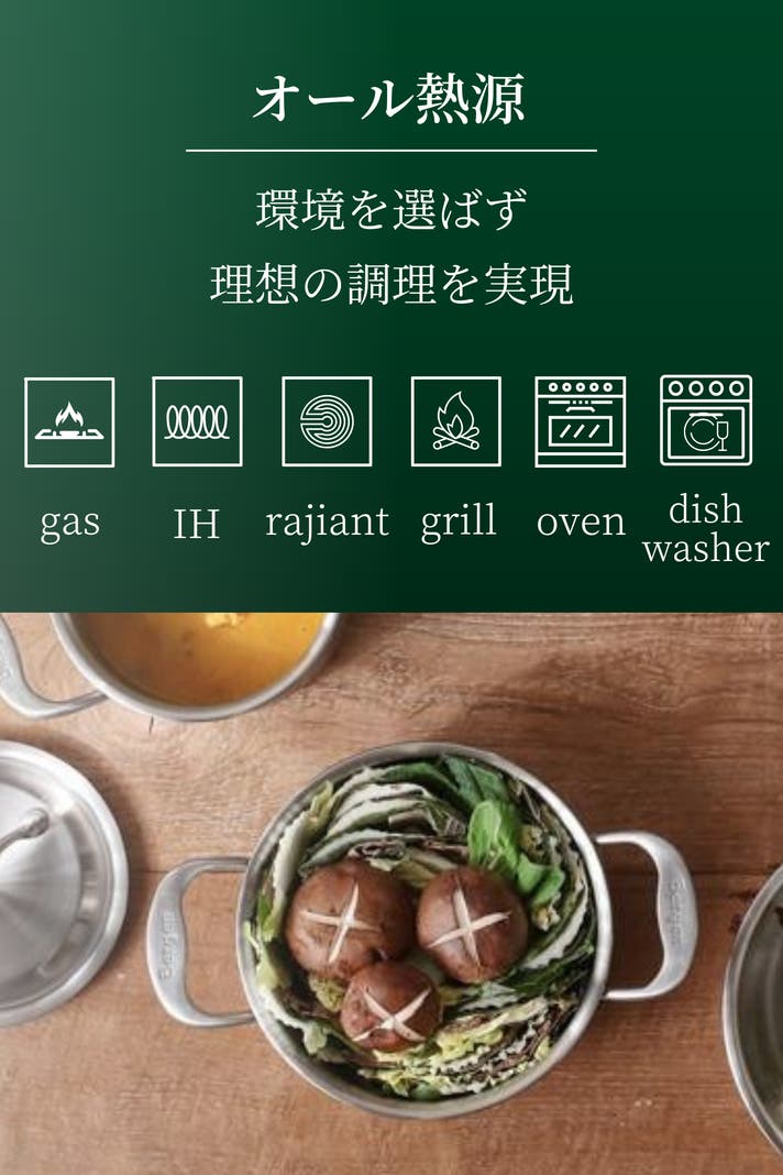 オール熱源で調理が可能なためパッと手に取りチャチャッと食事を済ませたい時にはとても便利にお使い頂けます。1人2人用の料理には欠かせないクッキングウェアです。