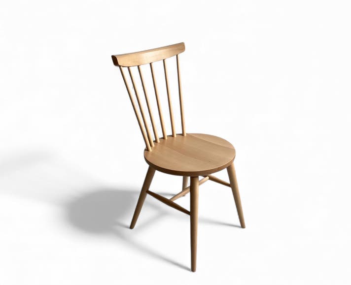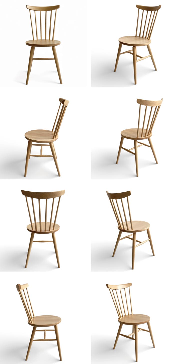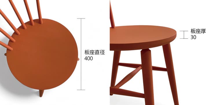 伝統的なコムバックタイプのウィンザーチェアの様に見えますが、特徴的な可愛い円形の座面で他との違いを見せてくれます。しかも、この座面はただ丸いだけでなく、丁寧な緩やかな座繰り加工が施されており、お尻を優しく受け止めてくれます。