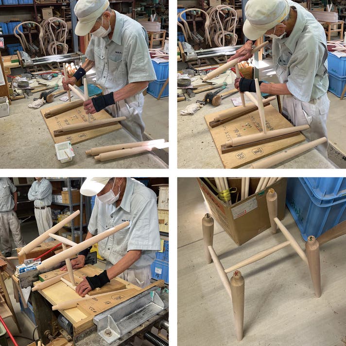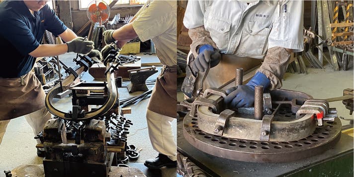 木材を高温で蒸し、柔らかくなったところを、木が冷めてしまわない限られた時間で曲げて治具(※曲げた木を固定するオリジナルの金具)を用いて成型する様子は本当に圧巻です。