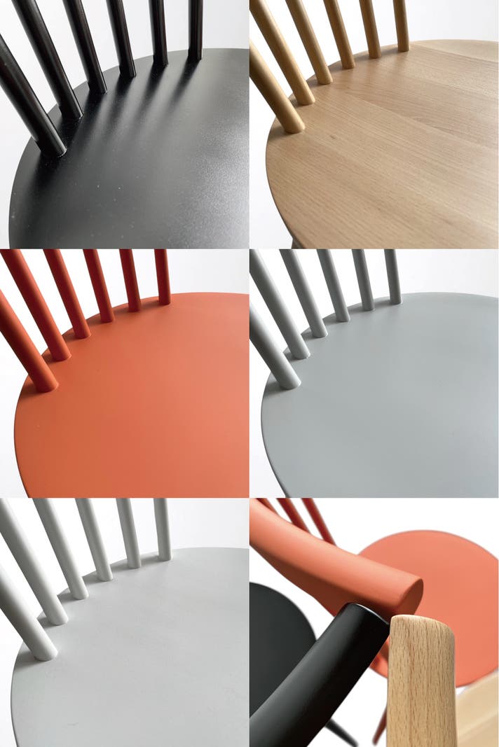今回の復刻で登場するカラーリングは、この商品の魅力を最大限生かすことができる、ナチュラル・ホワイト・ブラック・クールグレー・オレンジの5色を展開します。クールグレーとオレンジはマットな質感で反射が少な目、ナチュラルとホワイトは少し艶があります。一番、艶がある仕上げになっているものはブラックになります。