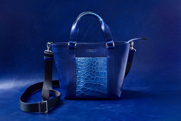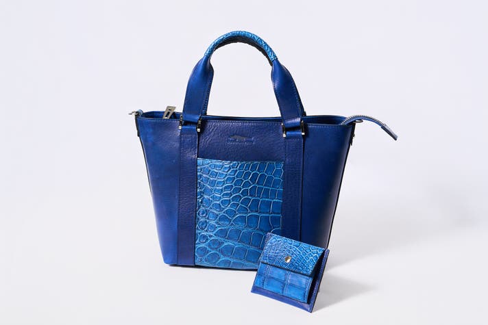 ※色の組み合わせ【 イタリア産のミッスーリ牛革:ロイヤルブルー & クロコダイルレザー:藍染 】