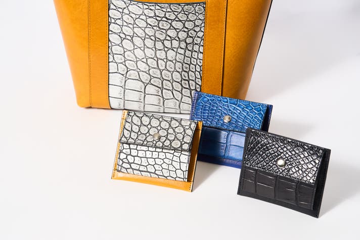 今回の製品に使用しているクロコダイル革は、東京都台東区に拠点を置く大手の老舗革屋さんの協力のもとに、丁寧に仕上げられています。クロコダイルの取扱いでは国内屈指の規模として世界全体でも高いシェアを誇ります。自社による原皮買付けから仕上がり革のお届けに至るまで、責任を持って一貫した管理を徹底することで産み出すその品質は、海外メゾンブランドからも選ばれ、日本の高い鞣製染色技術を世界に発信しています。