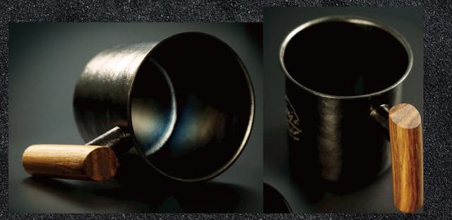 素材:純チタン/ 内面:研磨加工 / 持ち手:天然木