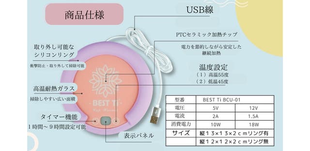 ・BEST-Ti 加熱コースター×1個(ピンクカラー)