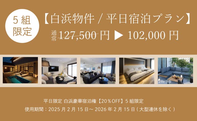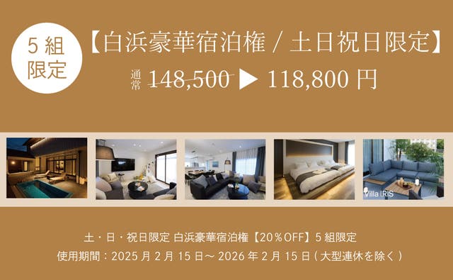 【土日祝限定】白浜豪華宿泊権(20%OFF)